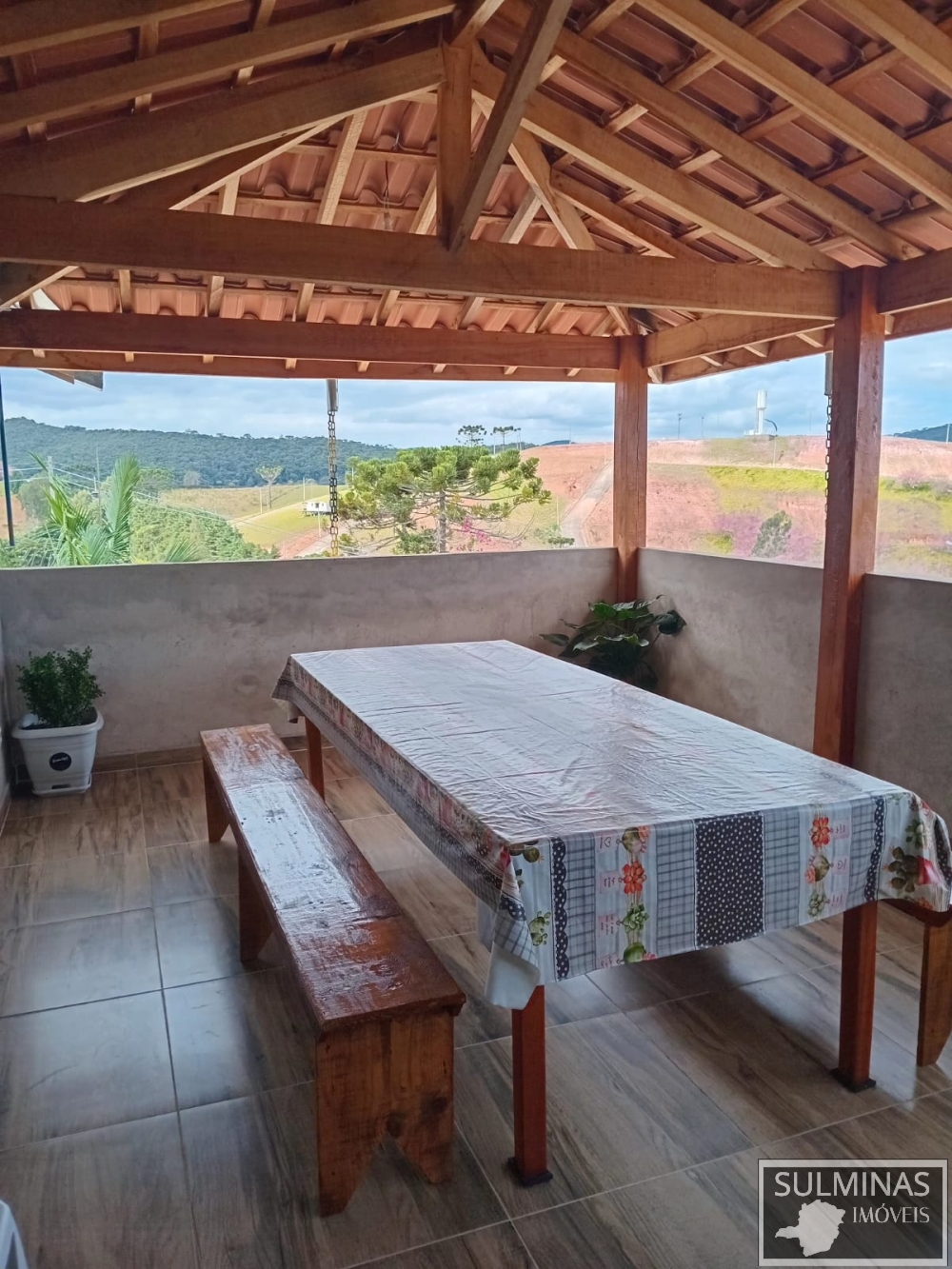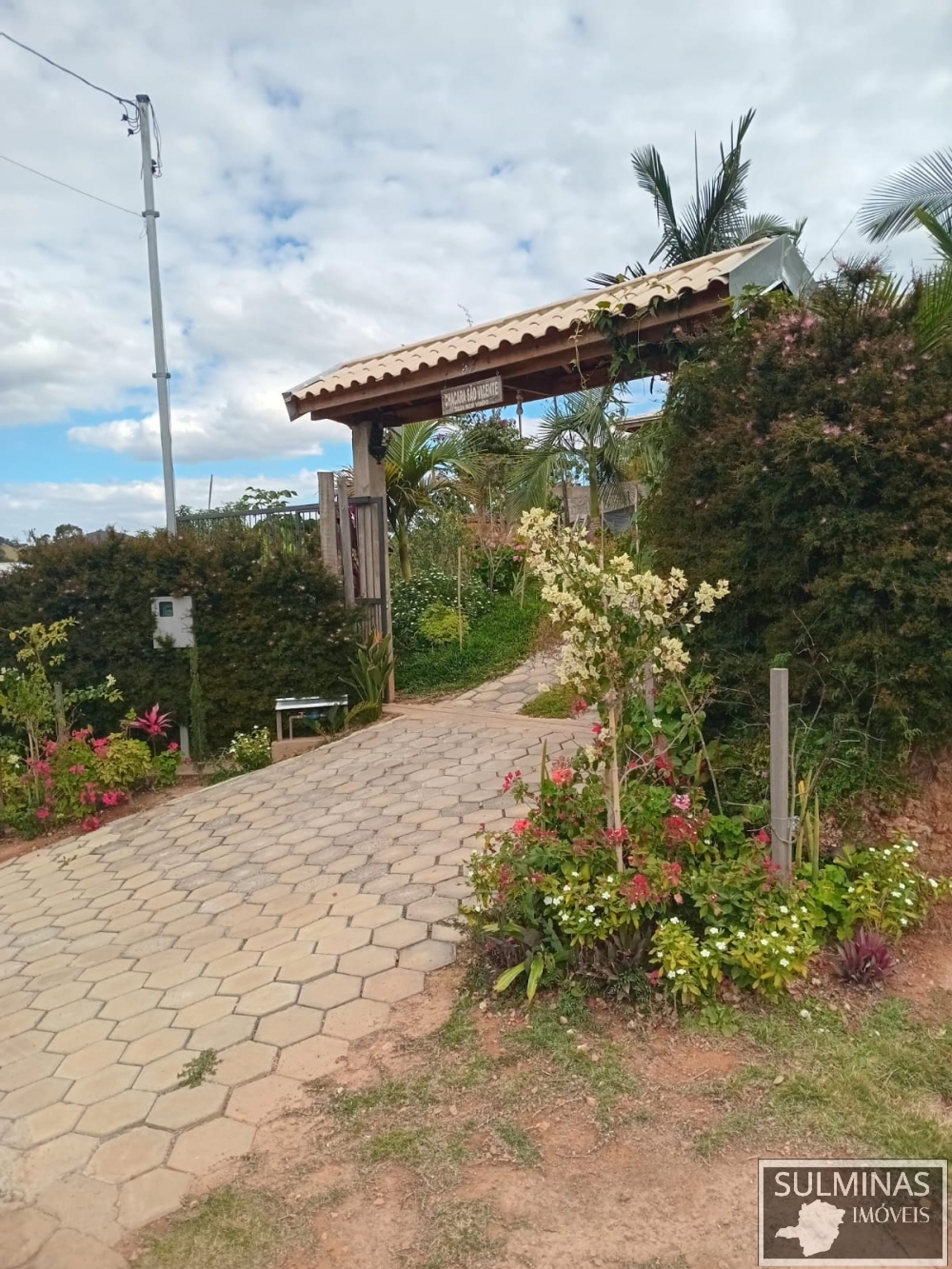 panorâmica ,área de serviço ,garagem coberta, capela privativa, jardim ,pomar